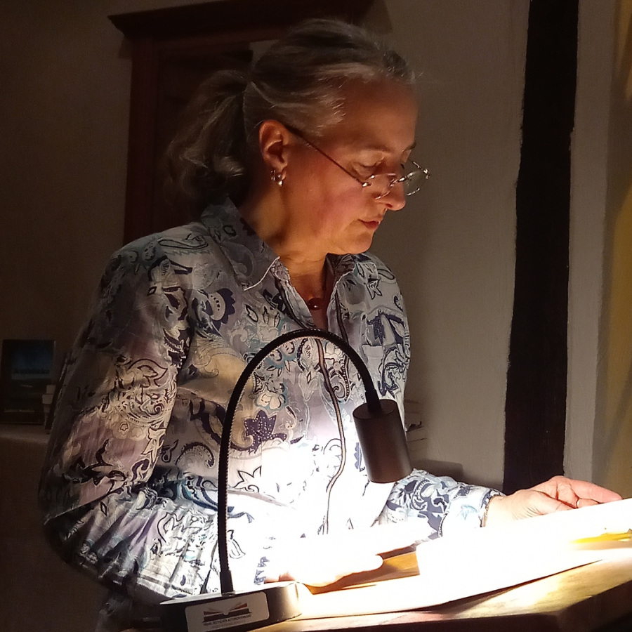 In dem vom Feuer im Ofen gemütlich erwärmten Raum las die Autorin Geschichten und Gedichte aus ihrem neuen, ihrem vierten Buch „Leben. Facettenreich schimmernd“ und lies die Zuhörer damit teilhaben an ihrer Sicht auf die Welt. Erika Heyde hat darin selbst Erlebtes und Beobachtetes aus ihrem Leben in Lyrik und Prosa gefasst, vieles auch gewürzt mit Humor. Im letzten Kapitel ging der Blick dann über den Tellerrand hinaus auf den Zustand der Welt – und der ist momentan nicht erheiternd. So baten die Zuhörer zum Abschluss der Lesung noch um etwas zum Schmunzeln, ein Wunsch, dem die Autorin gerne nachkam.